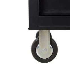 The Crimson 9 drawer bottom tool cabinet features, soft assist, auto close drawers. The cabinet is great for storing and organizing all your larger hand tools. Includes industrial black powder coat paint, 100 pound weight rated full-extension drawer slides. Total weight capacity of the chest is 1200 lbs on 4 each, 5 x 2 inch heavy duty castors. Includes 2 keys, for added security.